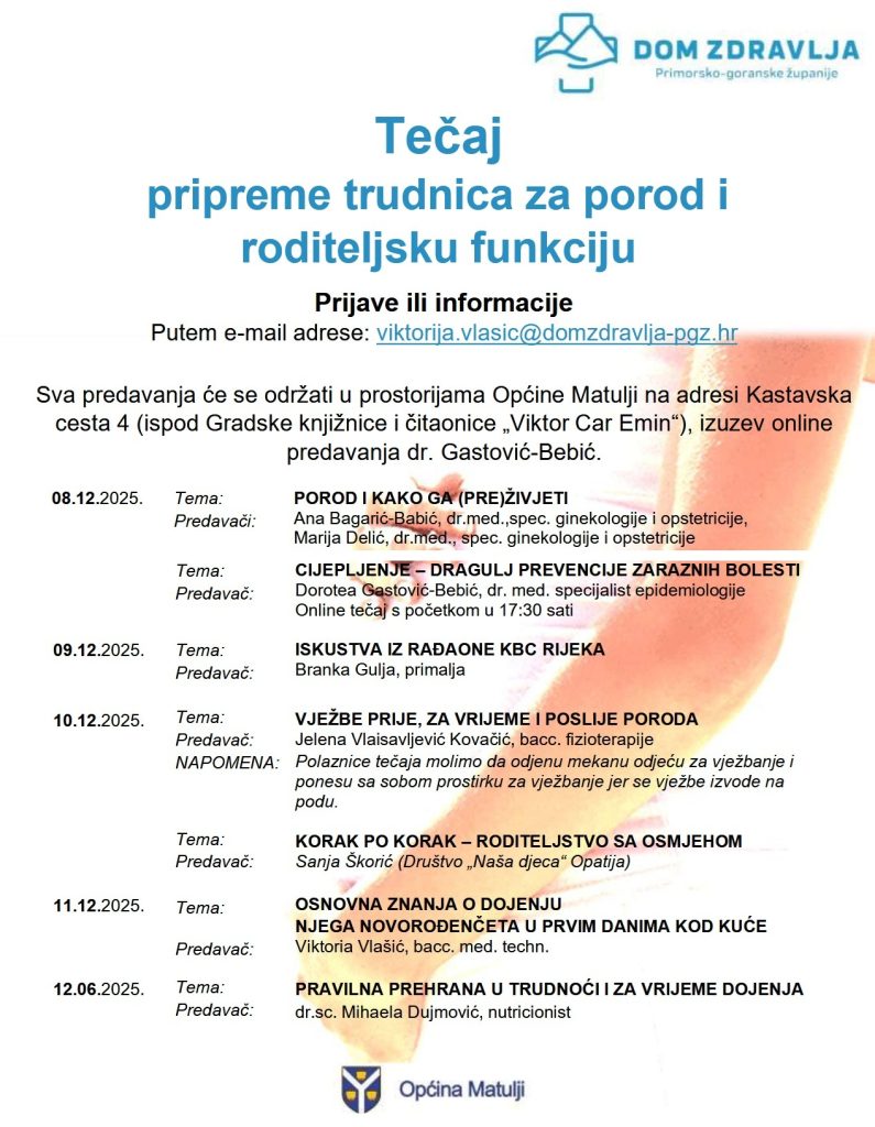 TEČAJ PRIPREME TRUDNICA ZA POROD I RODITELJSKU FUNKCIJU